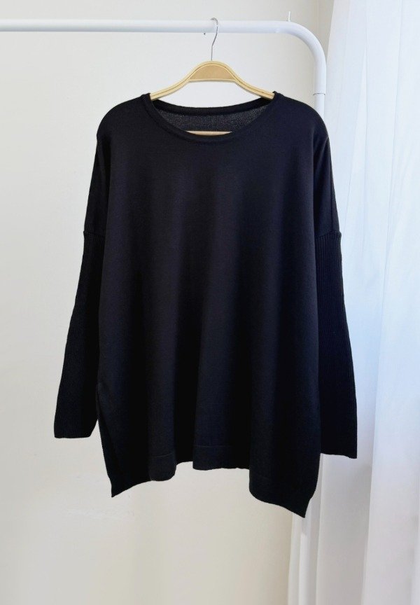 Sweater en bremer oversize, cuerpo amplio ,mangas ajustadas. Solo negro