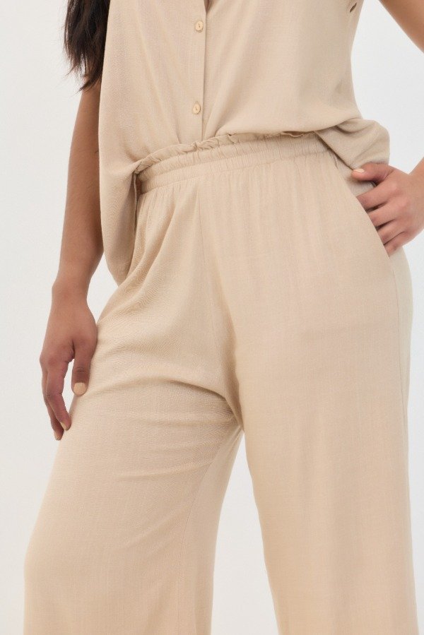 PANTACOURT EN LINO ELASTIZADO CON LUREX. CINTURA ENTERA ELASTIZADA.