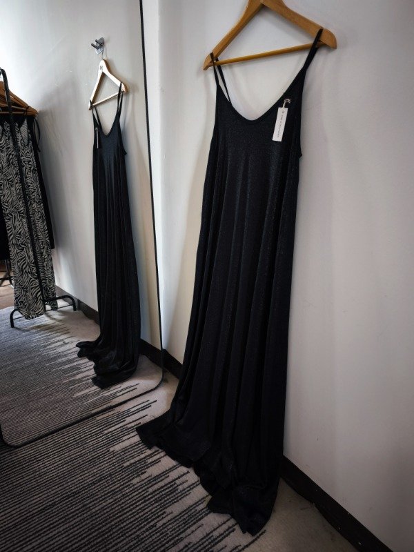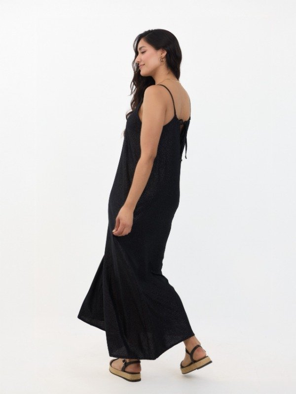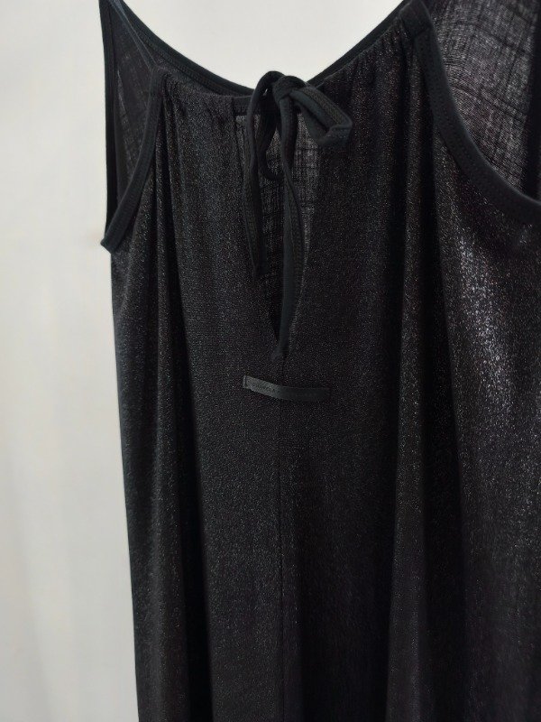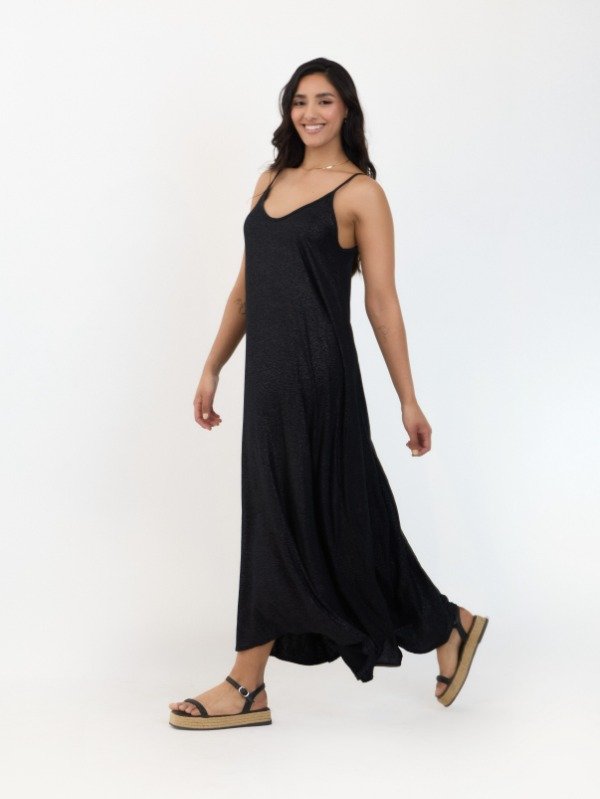 VESTIDO EN LINO ELASTIZADO CON LUREX. BRETELES REGULABLES. CUERITO MARCA EN ESPALDA.
