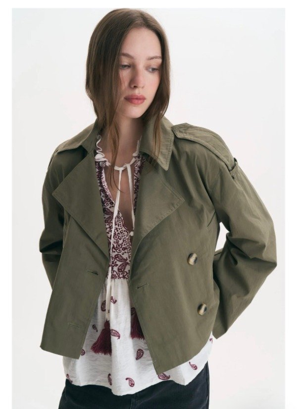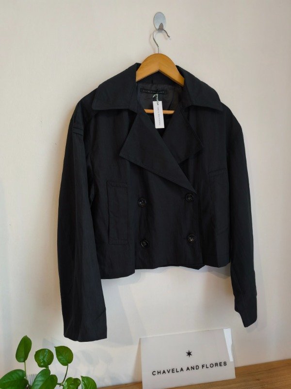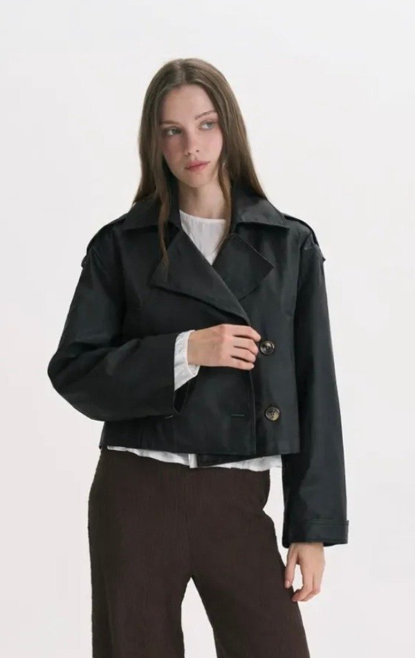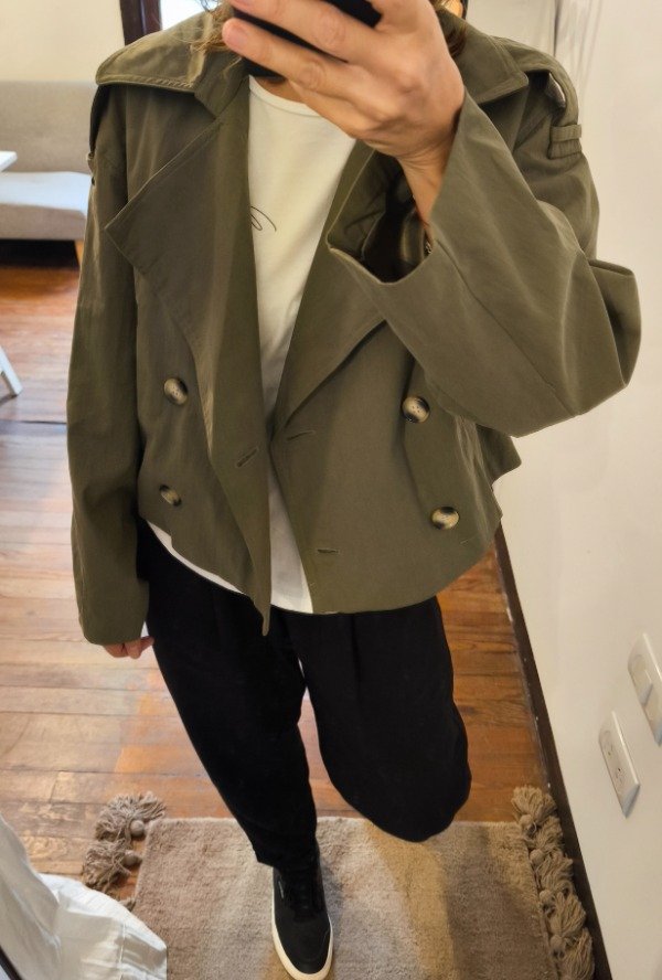 TRENCH FORRADO CON BOLSILLOS DELANTEROS Y ABOTONADURA CRUZA. MANGAS Y CUERPO HOLGADO TIPO OVERSIZE.