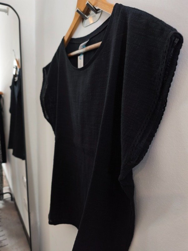 BLUSA EN GENERO ALGODONOSO Y LIVIANO CON DETALLE DE PUNTILLA DE ALGODON TEÑIDA AL TONO DE LA TELA.