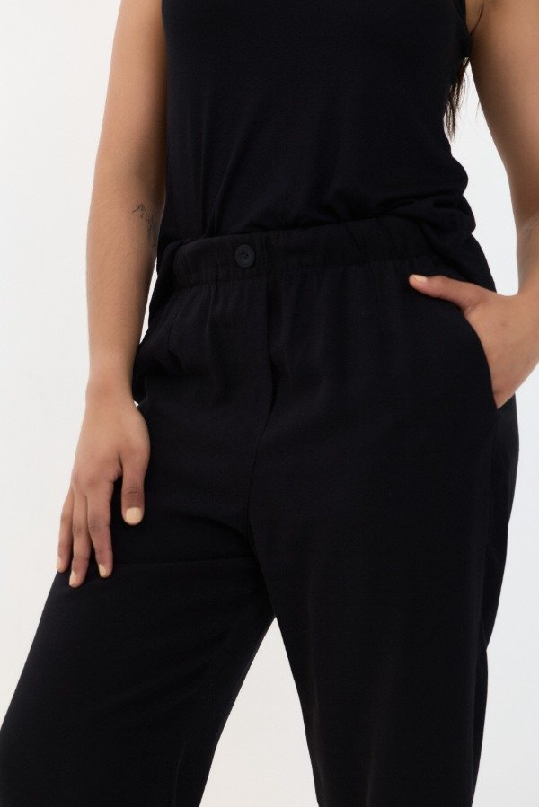 PANTALON EN GENERO SUPER FRESCO ,CON CUERPO Y UNA CAIDA DIVINA. CINTURA ENTERA ELASTIZADA, BOLSILLOS DELANTEROS INTERNOS Y 1 PLAQUE TRASERO. CARTERA SIMULADA. PIERNA QUE SE ANGOSTA O CIERRA HACIA EL TOBILLO. BOTON AL TONO