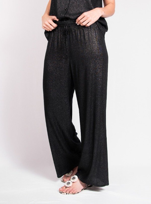 PANTALON EN LINO CON LUREX ELASTIZADO. RECORTE EN LATERALES , CINTURA ENTERA ELASTIZADA Y TIRITA EN CENTRO CINTURA A MODO DE DETALLE. SUPER COMODO Y ELEGANTE. PRE-LAVADO.