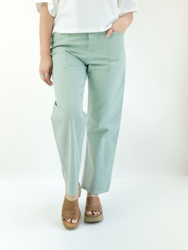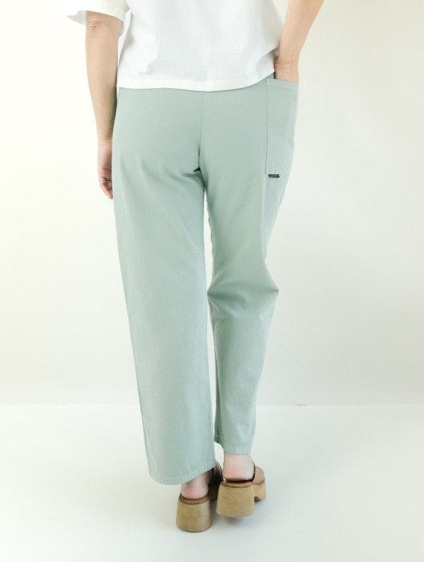 Pantalón en gabardina 6oz. 100%alg. corte recto y cintura entera elastizada. Bolsillos delanteros a cada lado y 1 atrás que sale de la costura lateral