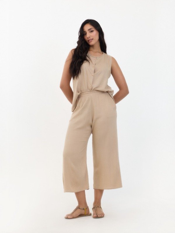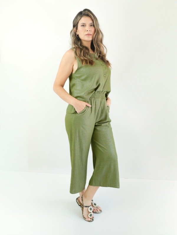 PANTACOURT EN LINO ELASTIZADO CON LUREX. CINTURA ENTERA ELASTIZADA.